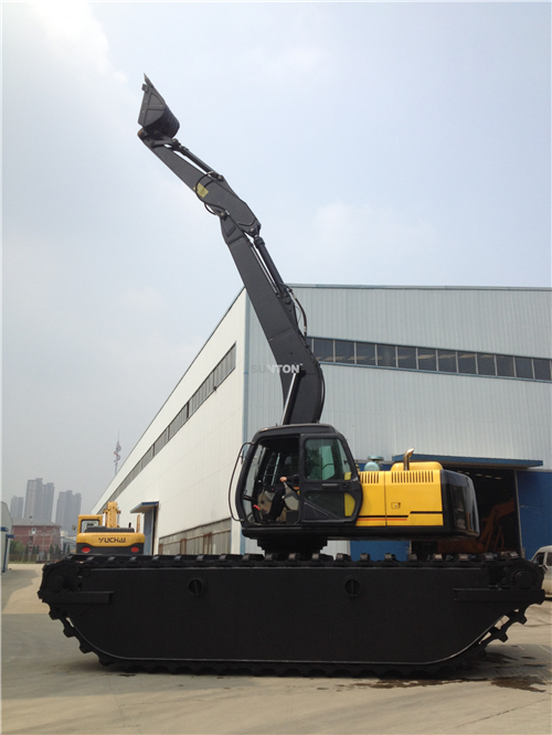 - 可在水深1米以內(nèi)的河道與海灘中作業(yè)。超過1米水深的作業(yè)環(huán)境,可根據(jù)客戶要求進(jìn)行特別設(shè)計(jì)及制造。產(chǎn)品對(duì)特種作業(yè)環(huán)境的適應(yīng)能力,其他類型的挖掘機(jī)無(wú)法替代,被海內(nèi)外客戶譽(yù)為“水中挖掘之王”。