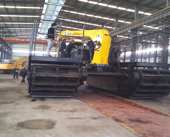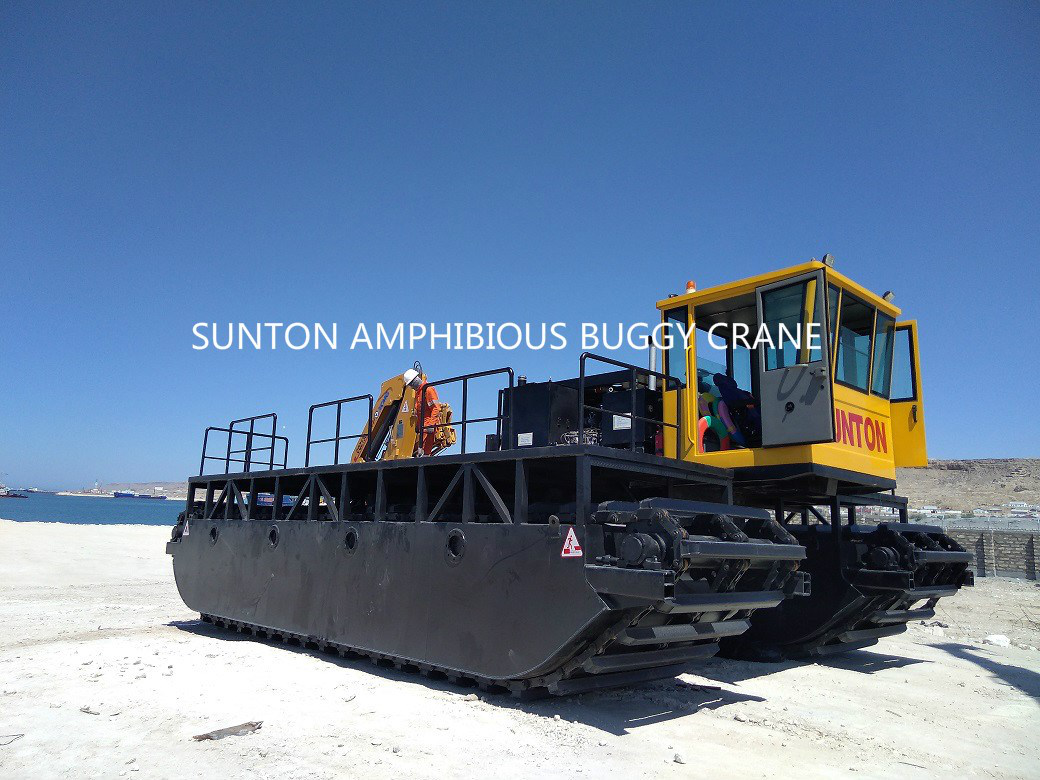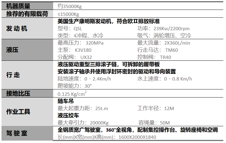 SLC35水陸兩用運輸設備是由浮箱式行走裝置、載貨平臺及隨車吊、液壓絞車等作業工具組成的全液壓履帶式水陸兩用運輸機器。包括動力系統、液壓系統、操作和監控系統、行走系統、載貨和作業系統等,從前向后依次布置為液壓絞車、駕駛室、動力艙、隨車吊、兩側為載荷平臺。