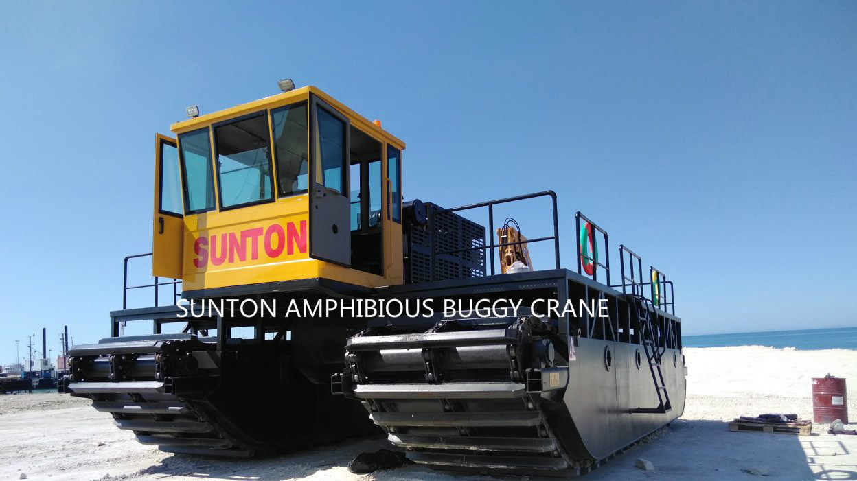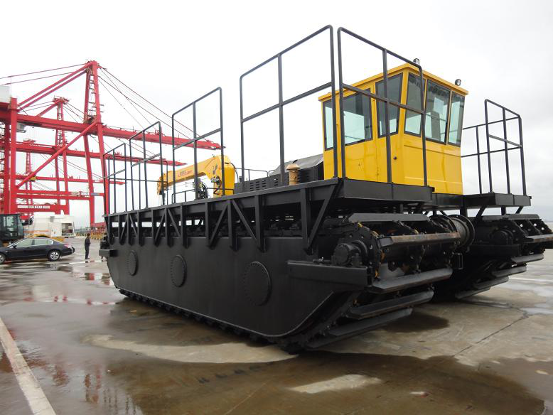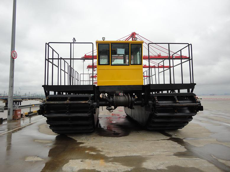SLC35 水陸兩用運輸船的行走裝置采用雙體船式浮箱結構履帶架及密封的箱形履帶板,超低接地比壓,能在松軟泥濘的濕地、灘涂、沼澤地帶及泥沼中作業和行駛,也可以水上浮航,保證能在水上安全游弋。 水陸兩用運輸船是屬于交通運輸、漁業作業的綜合機具,克服了目前汽車、拖拉機僅能在陸地作業,船僅能在水上作業的弊端。該船結構簡單,造價經濟,品質優良。